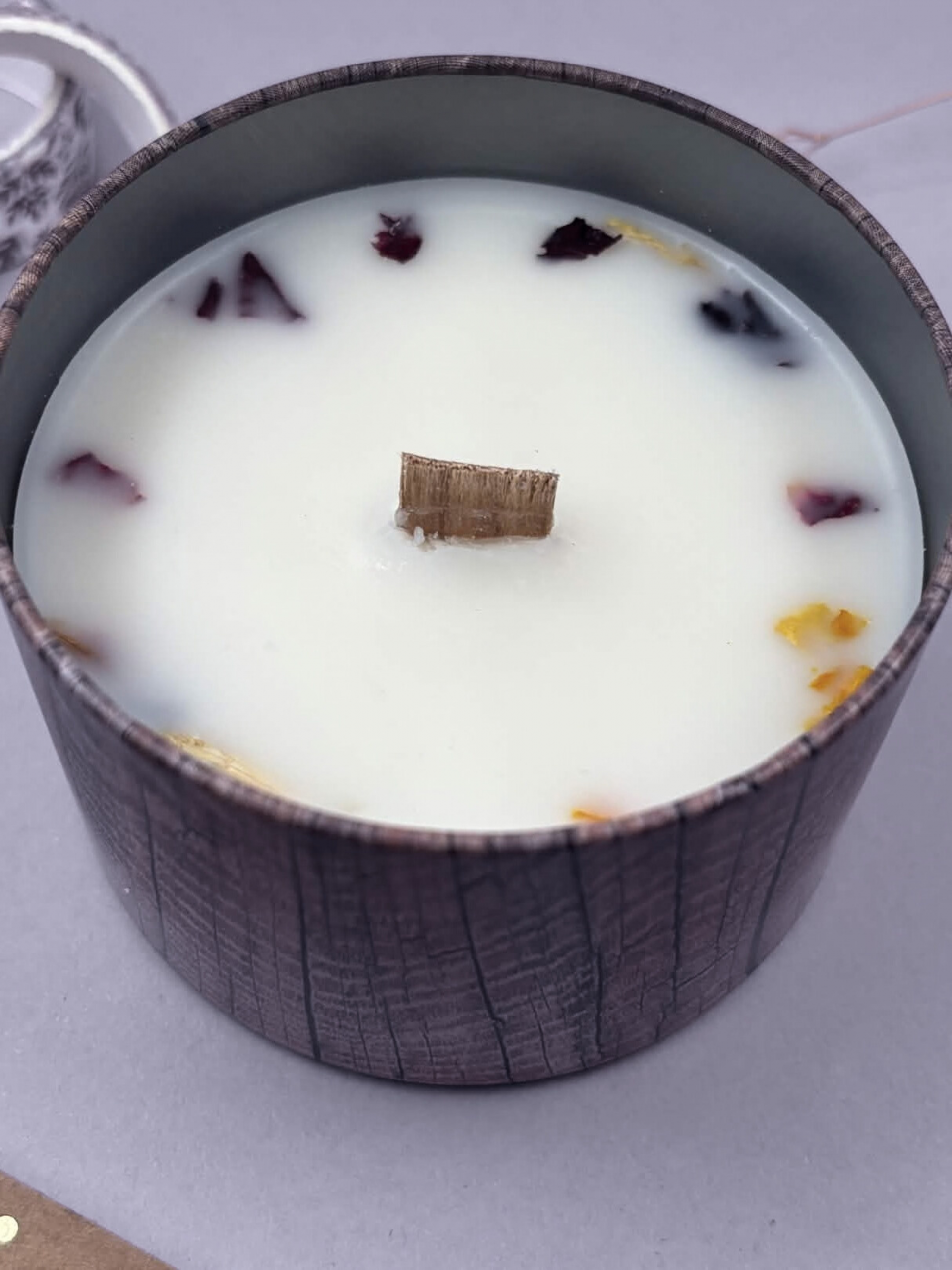 - Warning Information: Burn within sight. Keep away from children and pets. Never leave a burning candle unattended. Place candle on a heat-resistant, stable surface away from drafts, flammable materials, and anything that can catch fire. Always trim the wooden wick to approximately 3–5 mm (1/8–3/16 inch) before each use to ensure a safe, clean burn. Do not burn the candle for more than 3–4 hours at a time. Allow the wax to cool and solidify before relighting. Keep the wax pool free of debris, matches, and wick trimmings. Stop use when approximately 1 cm (1/2 inch) of wax remains at the bottom of the container. The container may become hot during use. Allow it to cool completely before handling.